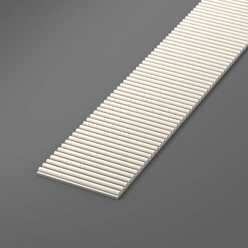The thin 7 mm profile ensures light construction and visual elegance without adding weight to walls. The clear geometry of the ribbed surface creates a strict, orderly pattern, ideally suited for modern and neoclassical interiors. The straight-line form simplifies installation and jointing of elements.