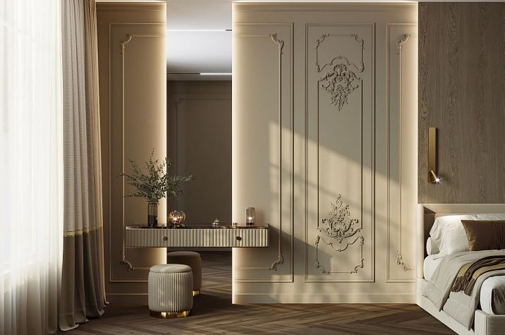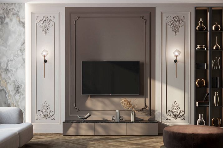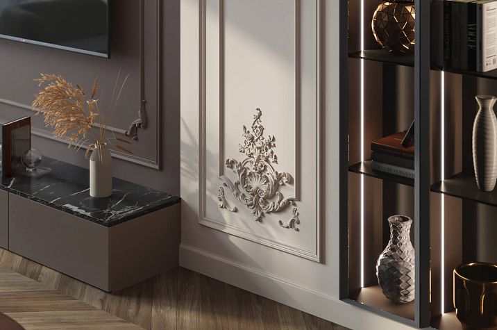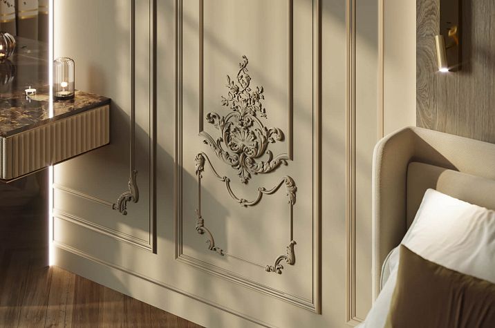 The first step is determining the level of decorative richness. How rich should the decor be? Total boiserie on all walls or an accent wall? Wide panels with maximum ornamentation or laconic medium formats? The answer to this question determines the choice of CPU-5 series kits and their formats.