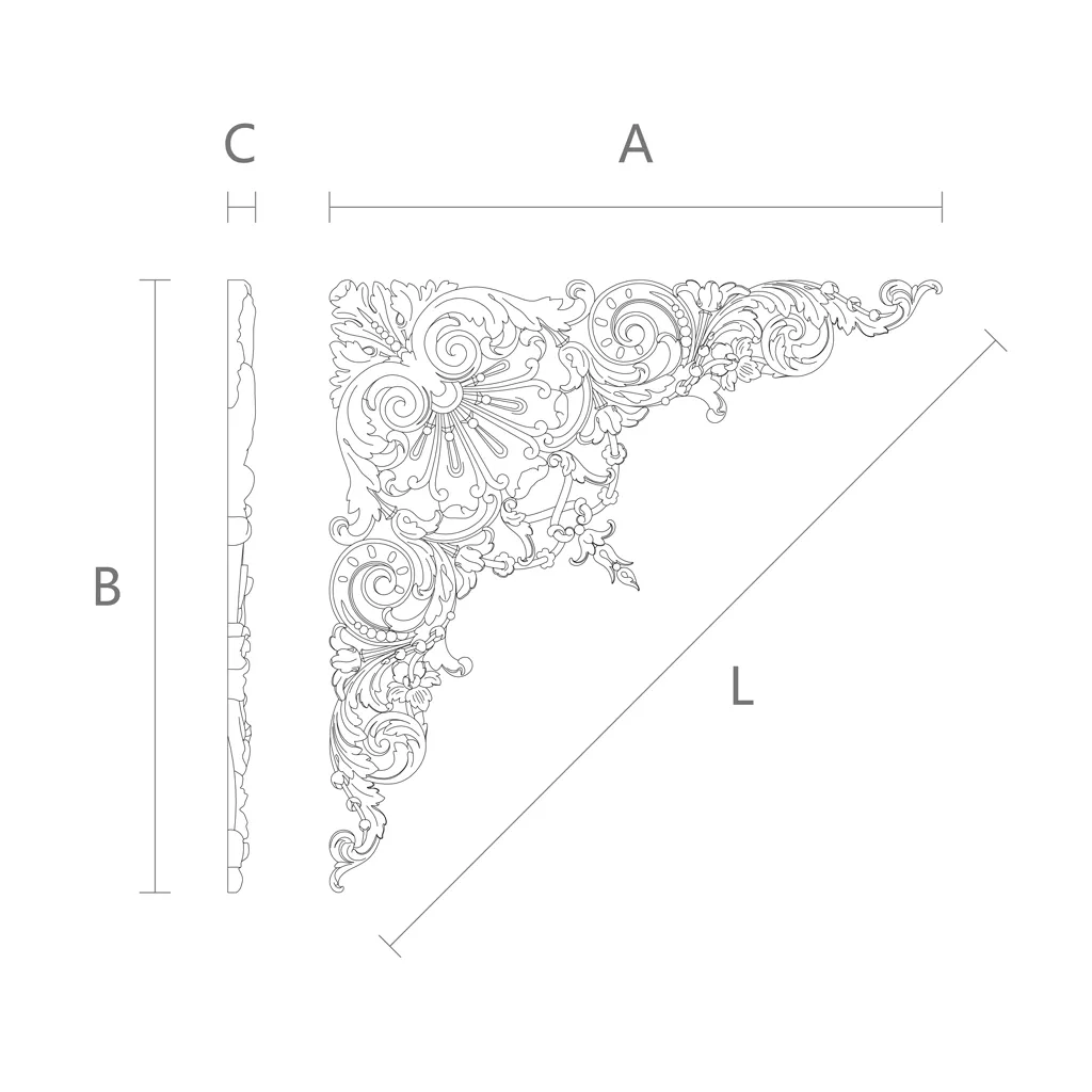 ● If you want to create a composition in your interior, you can use decorative overlay N-357 from wood, in combination with other decorative elements and hardware, which you can find at the Stavros decor store. You can collect several overlays of different sizes, shapes, and patterns, and arrange them on a wall, door, furniture, or other surface, creating a unique and interesting pattern. You can also complement overlays with other decorative elements, such as rosettes, brackets, moldings, panels, mirrors, and others. You can choose the color and type of wood that will match or contrast with the color and material of the base. You can also choose a suitable frame that will unite all elements into a single composition. Thus, you will be able to create a complex and refined composition that will fill your interior with artistic atmosphere and style.