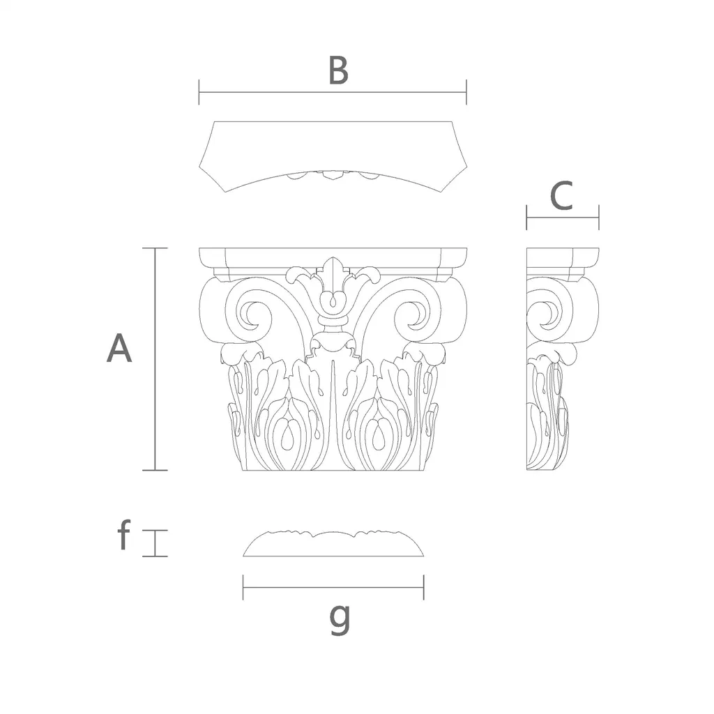 Резная капитель KL-004 прекрасно подходит не только для традиционных колонн или архитектурных структур. Она также может быть использована в качестве декоративного элемента в мебели, например, в изголовьях кроватей, дверных наличниках, или как роскошное украшение капитель над дверью.