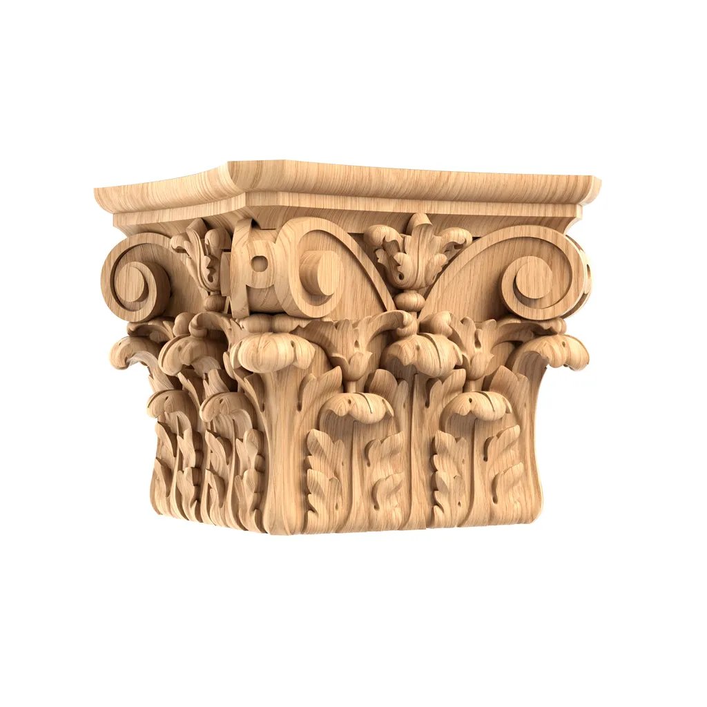 Резная капитель KL-012 улучшает визуальное восприятие любого пространства. Её сложная резьба и элегантный вид привлекают внимание и становятся центральным элементом декора, создавая фокусное точку в интерьере.