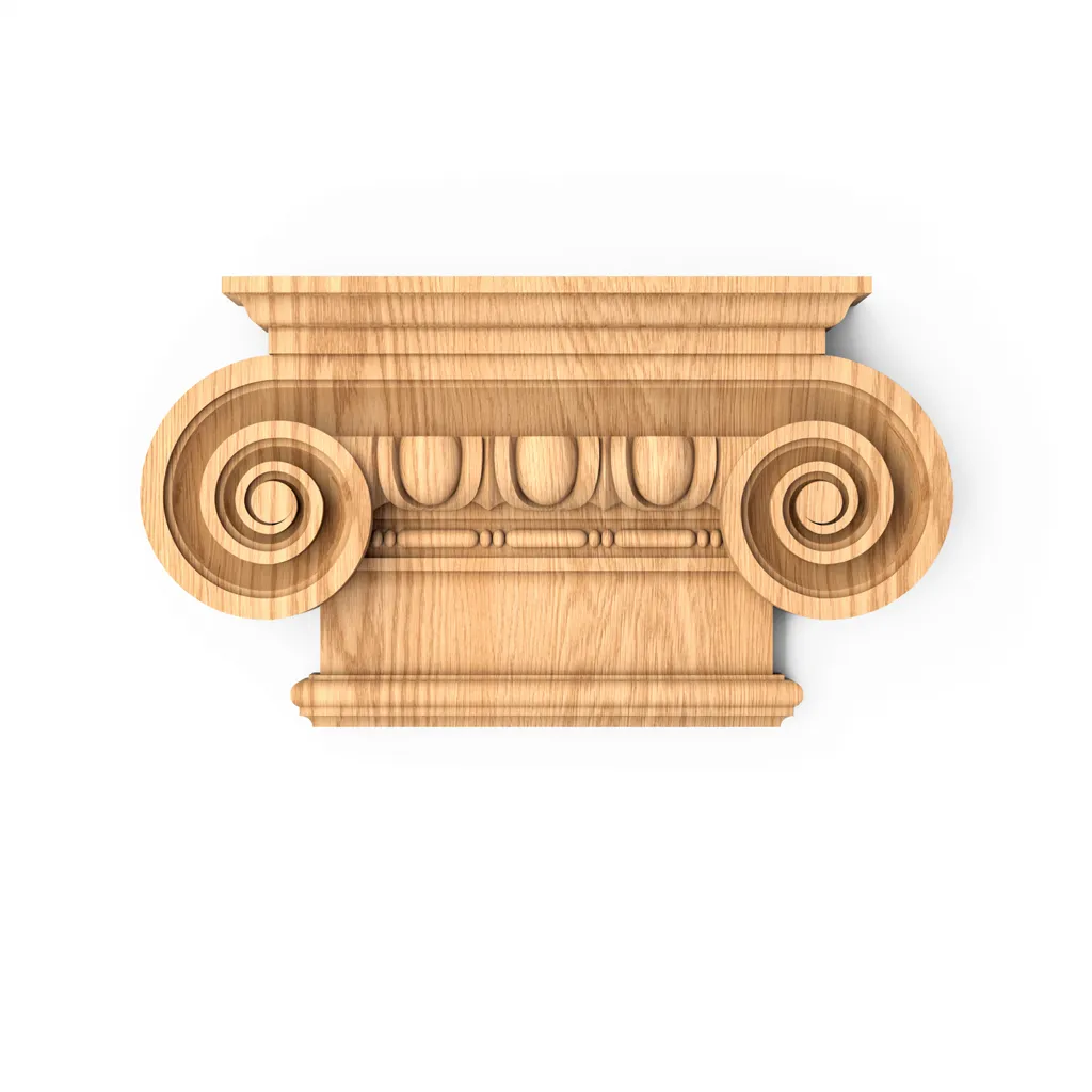 Резная капитель KL-060 представляет собой верхнюю часть колонны или архитектурного элемента, которая не только выполняет функцию поддержки, но и служит важным декоративным компонентом. Она изготовлена из качественного дуба или бука, что обеспечивает её прочность и долговечность. Каждая капитель отличается глубокой и аккуратной резьбой, которая может включать различные узоры – от классических листьев аканта до более современных геометрических мотивов.