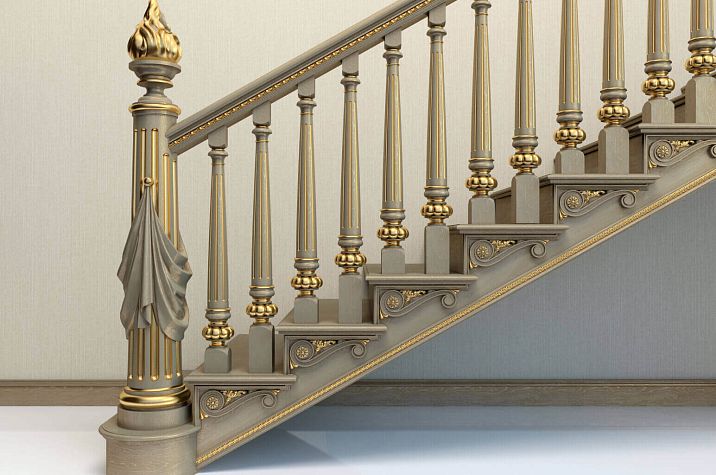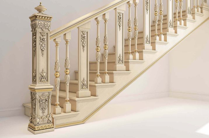 ● Posts — these are vertical supports that serve to mount handrails and balusters. Posts give the staircase solidity, grandeur, and style. In Stavros, you can buy posts from solid wood in various shapes, sizes, and finishes. You can choose square, rectangular, round, oval, shaped, or combined posts, with carved or turned details.