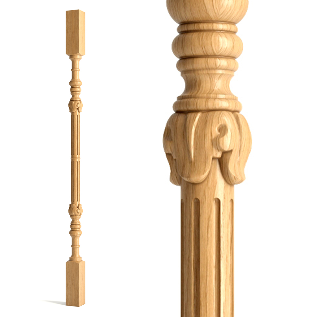 Балясина для лестницы L-045 отличается от других моделей тем, что она украшена вертикальными каннелюрами, которые подчеркивают ее изящную форму, а также резными листьями в верхней и нижней части изделия. Эти детали придают балясине для лестницы L-045 особенную утонченность и элегантность, делая ее не просто комплектующим для лестницы, а настоящим украшением.