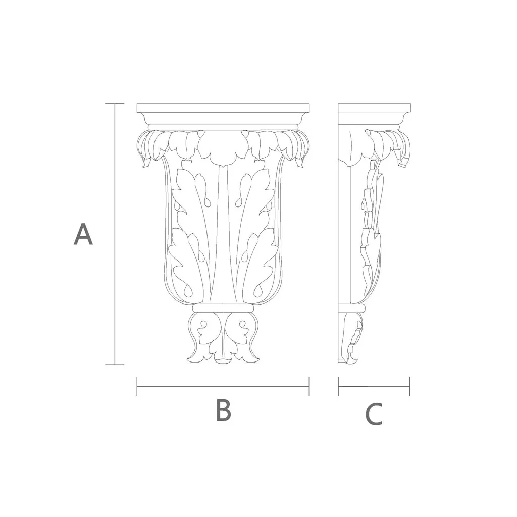 Универсальность применения: Благодаря своему изысканному дизайну и прочности, резной кронштейн KR-028 может использоваться в самых разнообразных интерьерах и целях, от создания полочных систем до декоративного украшения стен.