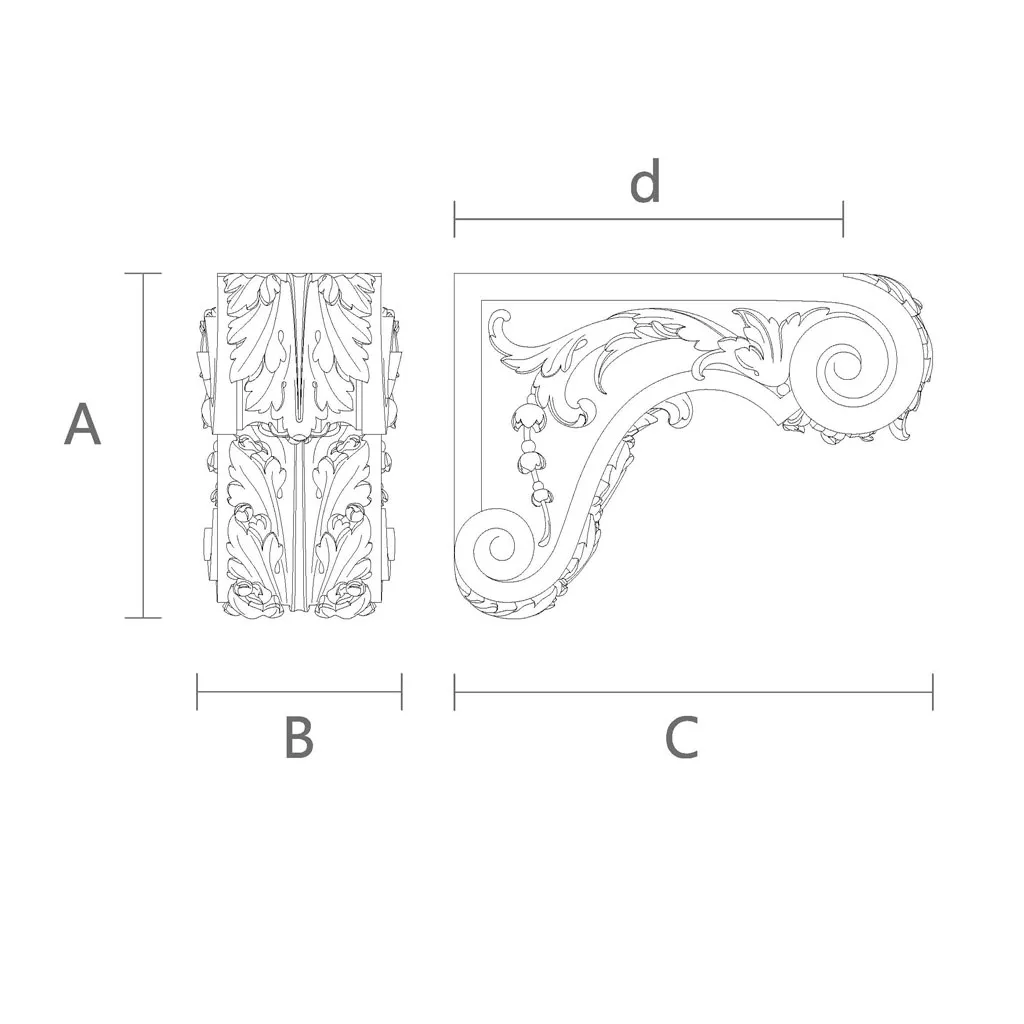 Этот изысканный элемент декора, вырезанный из цельного куска дерева, будь то дуб или бук, является воплощением древнего ремесла и современного дизайна. KR-054 не просто кронштейн; это символ уважения к природным материалам и старинным техникам резьбы, адаптированным к потребностям современного мира. Благодаря своей универсальности и эстетической привлекательности, резной кронштейн из массива KR-054 становится идеальным выбором для тех, кто стремится привнести в свой дом или офис ощущение роскоши и элегантности.