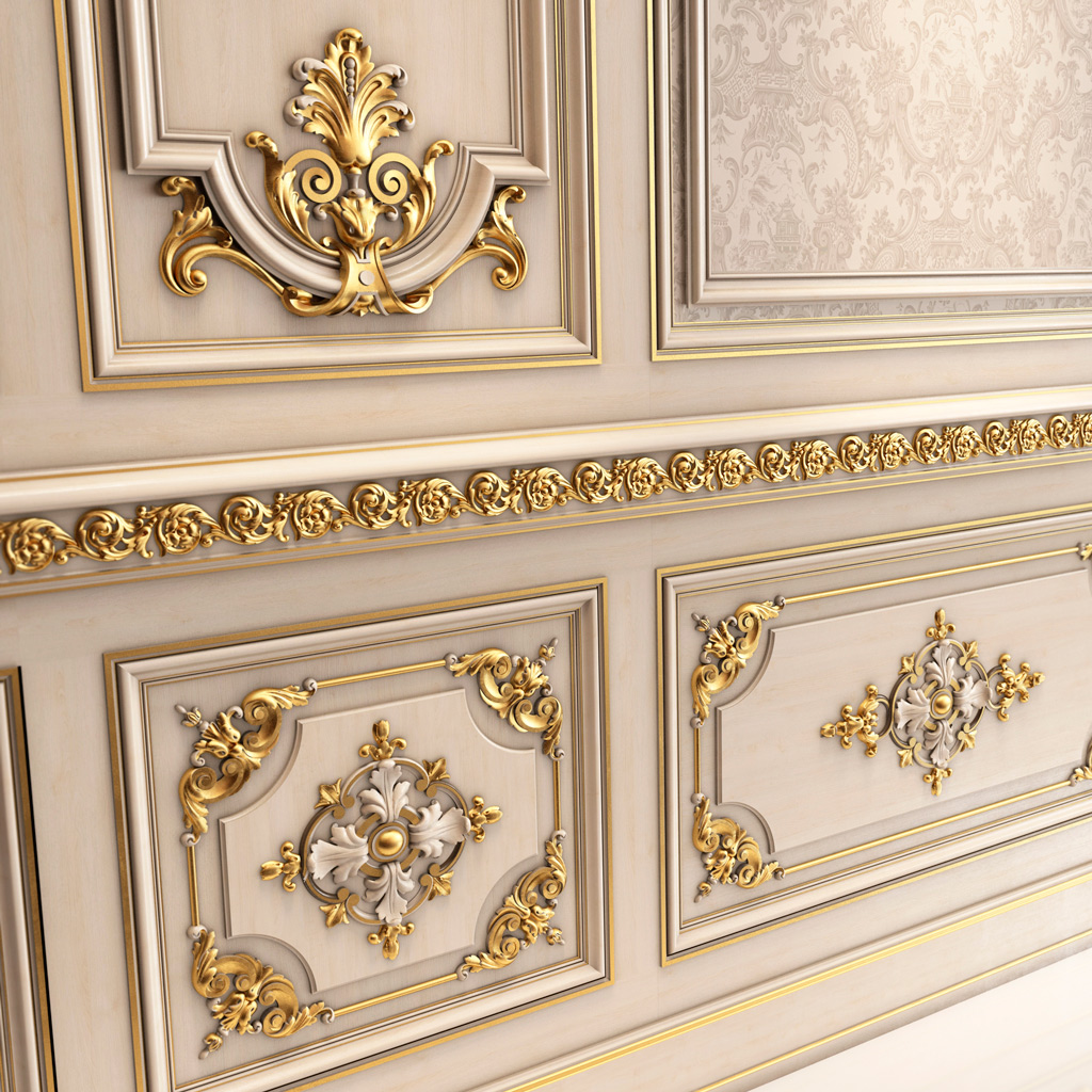 ● Стеновые панели: Создайте акцентные стены с использованием резных накладок как элементов декоративных панелей. Это может стать ярким дизайнерским решением, которое привлечет внимание и станет предметом восхищения гостей.