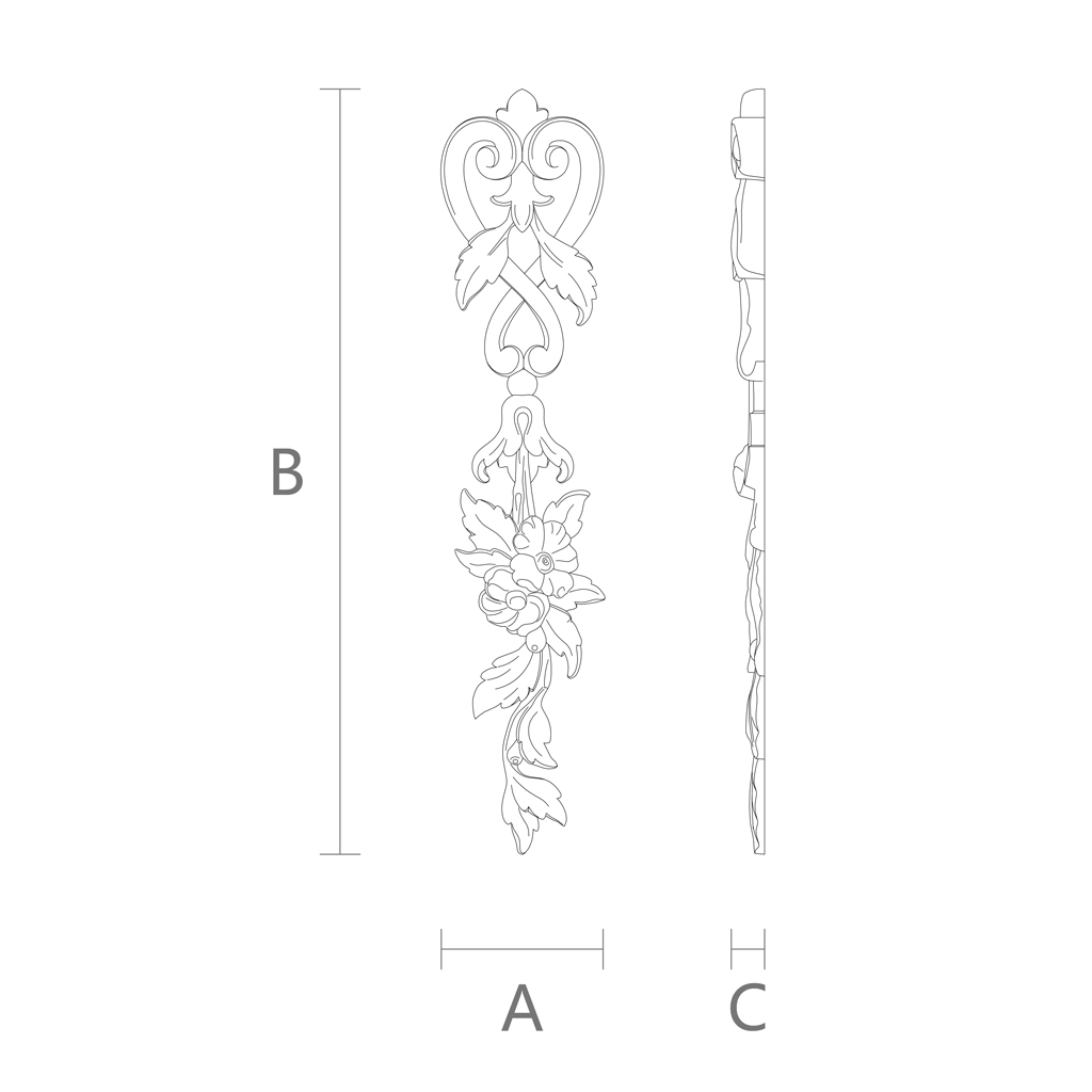 Резная накладка N.VRS-012 – это декоративный элемент, выполненный из натурального массива дуба или бука. Этот продукт создан с использованием мастерской техники резьбы по дереву, что позволяет добавить интерьеру утончённые детали, которые способны преобразить любое помещение. Деревянная накладка N.VRS-012 сочетает в себе традиции и современные технологии, создавая гармонию между природной красотой дерева и изысканным стилем.