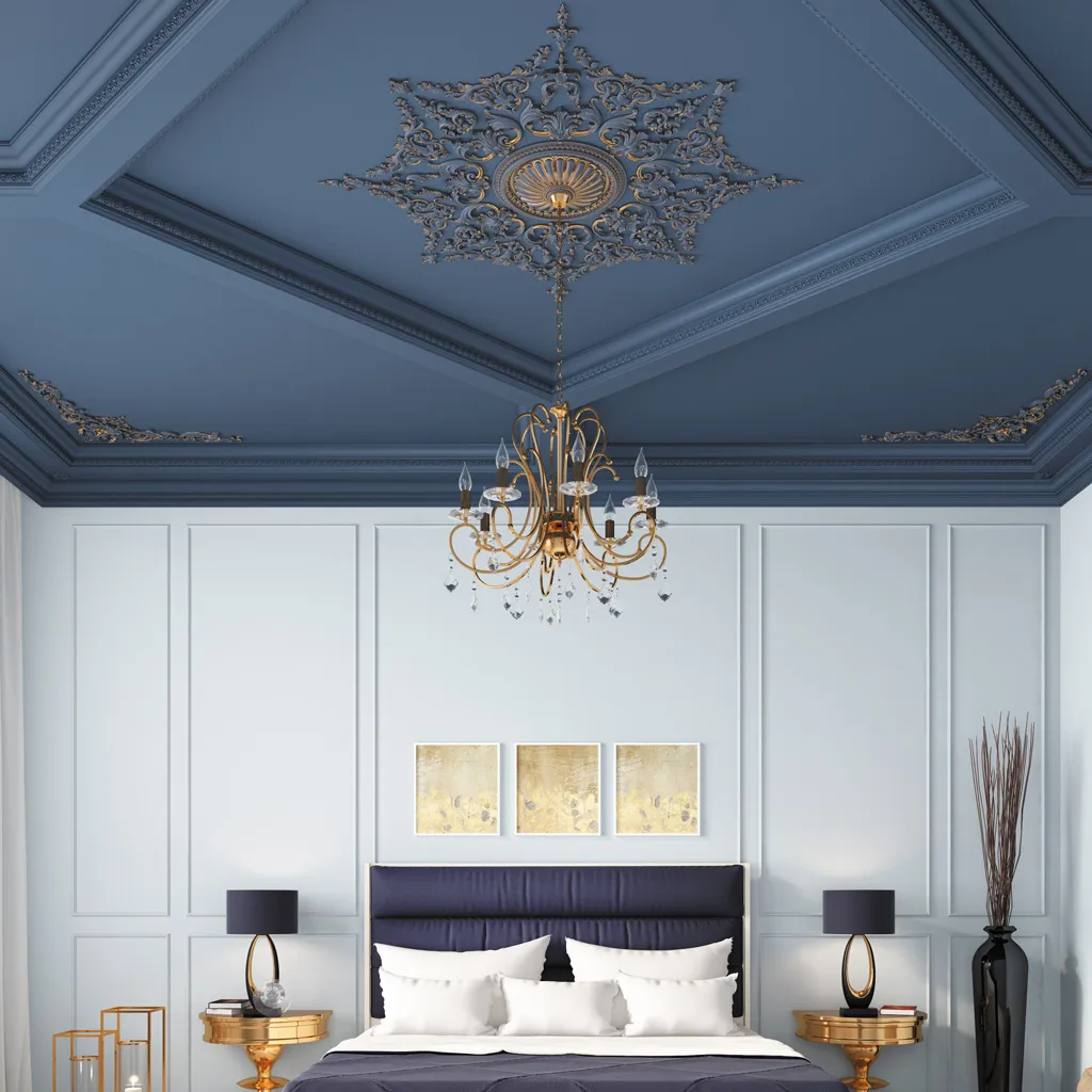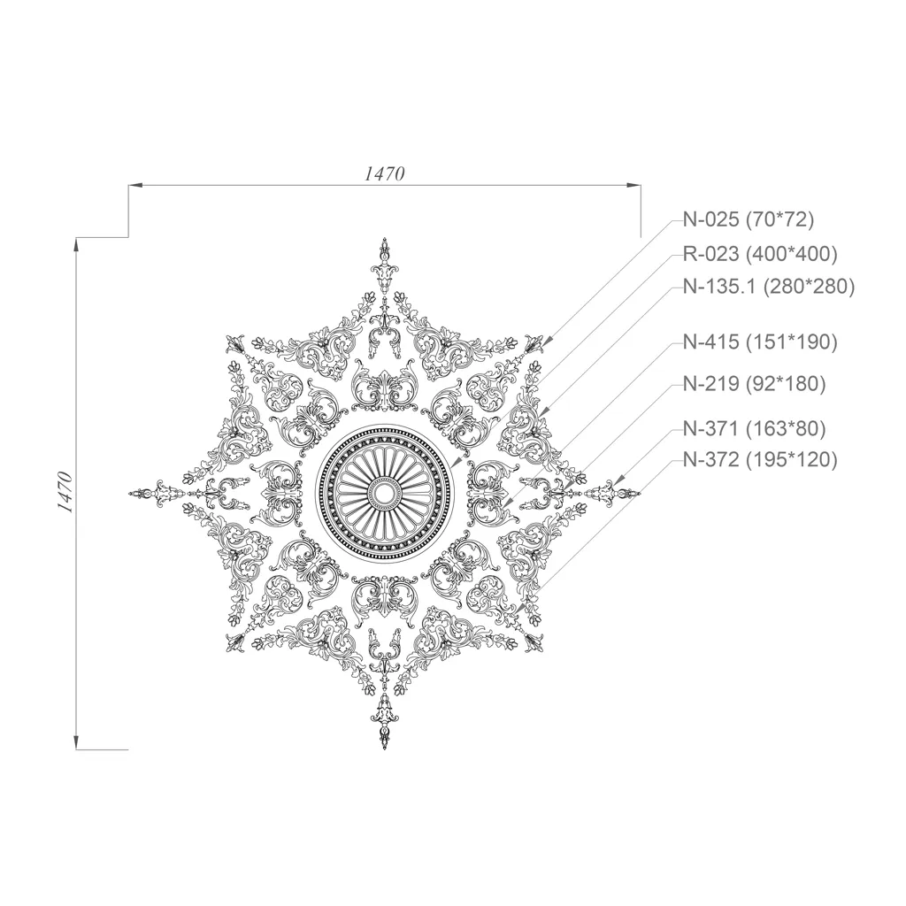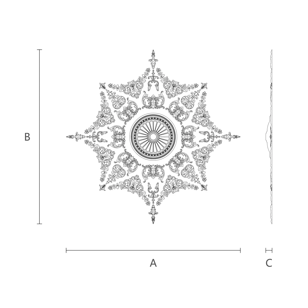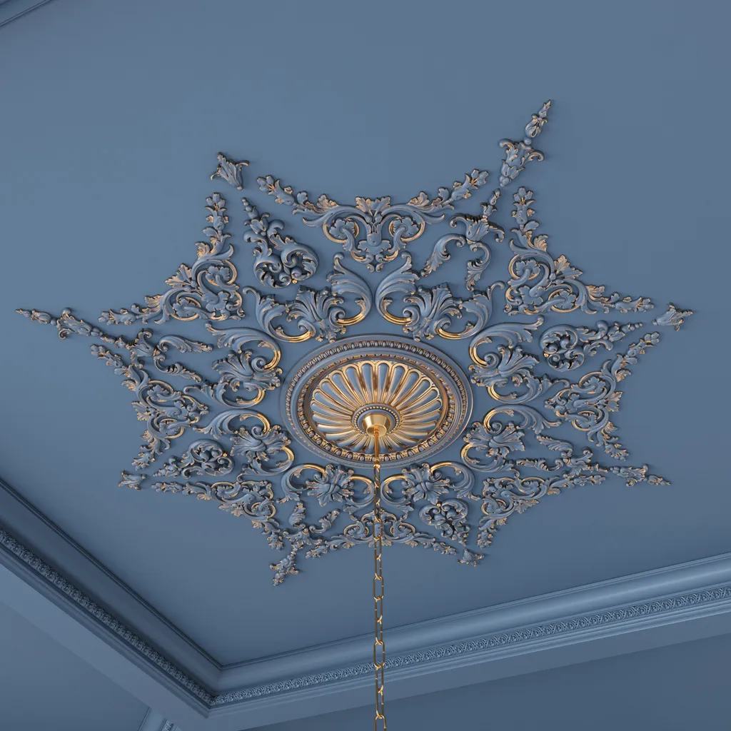Потолки: Резные розетки из комплекта CR-02-1.1 могут стать центральным элементом потолочного декора, особенно если сочетать их с лепниной, создавая тем самым классический и роскошный вид. Размещение розетки в центре потолка или вокруг осветительных приборов добавит изысканности общему интерьеру.