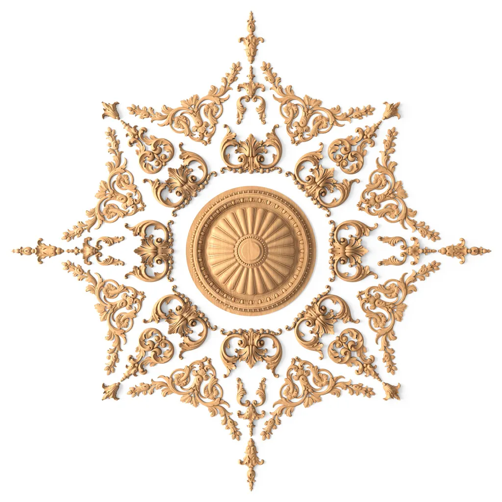 Стены: Резные накладки идеально подходят для создания акцентных стен. Они могут служить оформлением для картин или зеркал, а также выступать в качестве самостоятельных декоративных элементов, размещенных в ключевых точках комнаты, что придаст стенам дополнительную текстуру и интерес.