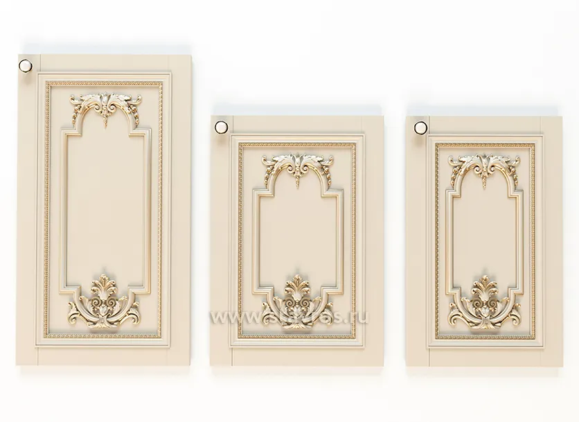 This Decor Set It can serve various purposes. You can use it as a decorative element for furniture, for example, to decorate panels, facades, doors, cabinets, chests, beds, etc. You can also use it as wall decor, creating unique compositions from appliques. You can arrange them diagonally, vertically, horizontally, or as a frame. You can combine them with other wooden decorative elements, such as pilasters, cornices, rosettes, panels, etc.