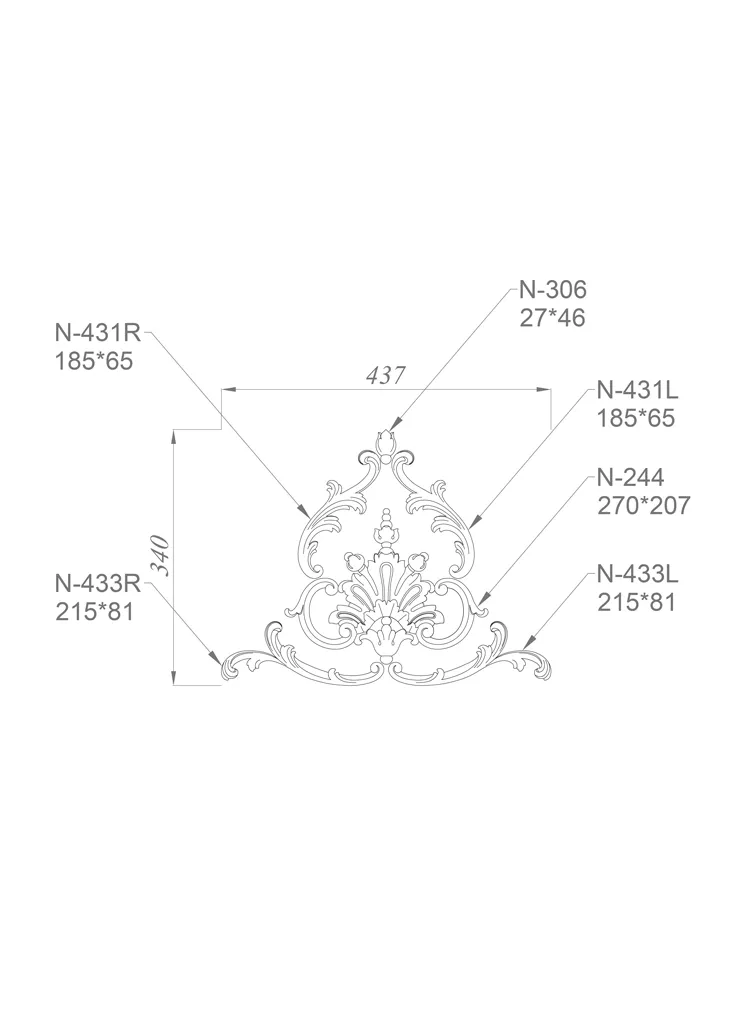Bring life to your interior by infusing every piece of furniture with the spirit of luxury using the C-037 set. Whether it's an antique buffet or a modern cabinet, each carved applique adds a layer of sophistication and depth, transforming ordinary items into works of art. Place them in prominent spots or use them as subtle accents to create an effect of surprise and admiration.
