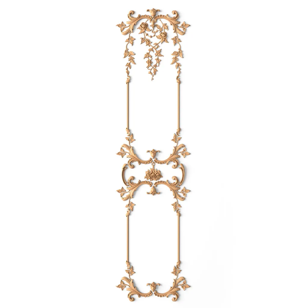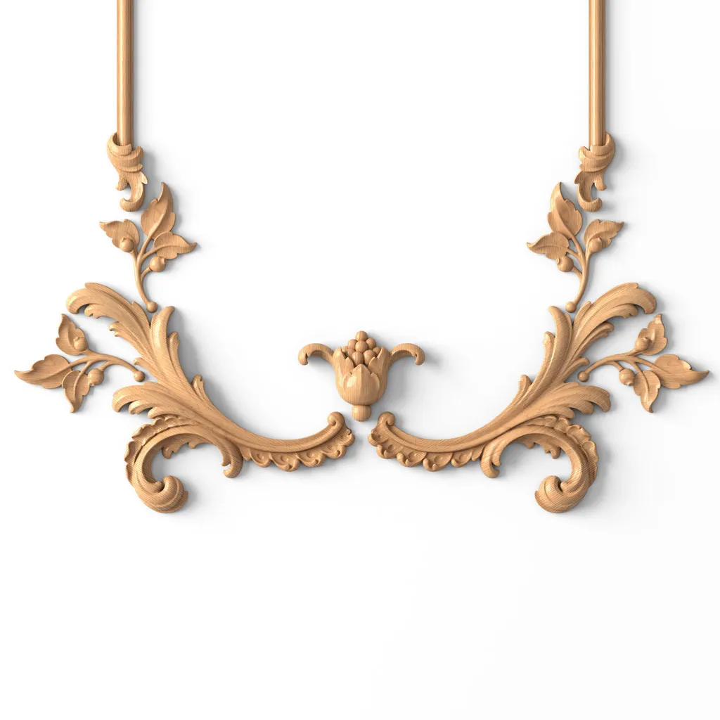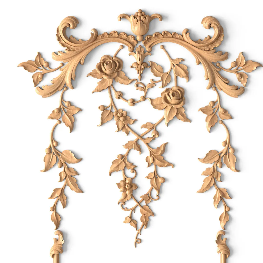 Wooden decor set C-048 — a versatile and practical set that allows you to create and experiment with the design of your interior. You can use these carved appliqués to decorate various surfaces such as furniture, doors, windows, fireplaces, walls, and others. You can arrange applique according to your taste and imagination, creating different compositions and styles. For example, you can emphasize the central element by decorating it with a large carved flower insert, which will attract attention and admiration. Or you can create a frame using smaller inserts with different ornaments, which will create a sense of harmony and unity. You can also combine inserts with other decorative elements from our catalog, such as carved columns, pilasters, cornices, moldings, and others. You can select inserts that harmonize with your interior in terms of shape, size, and style. For example, you can choose inserts suitable for a classic style, or inserts that add a modern accent. Inserts are easily attached to any surface using the special glue included in the set, or with nails if you want a stronger attachment. You can also paint or lacquer the inserts in any color you like or that matches your interior. You can choose the natural wood color to highlight its beauty and texture, or you can choose a brighter or darker color to create contrast or, conversely, blend in with your interior.