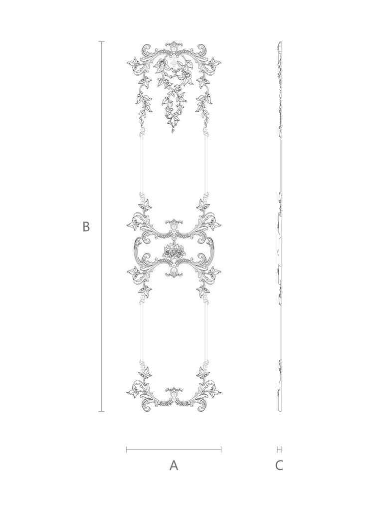 ● Carved Inserts N-470L and N-470R - paired inserts with carved flowers and leaves, which can be placed on either side of the central insert or used to decorate corner surfaces.