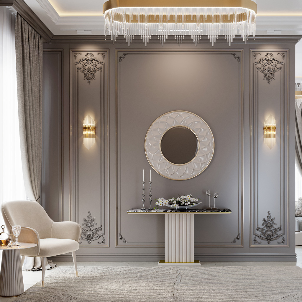 Create elegant accent panels or decorative frames on walls. This approach will make the interior more expressive and harmonious.