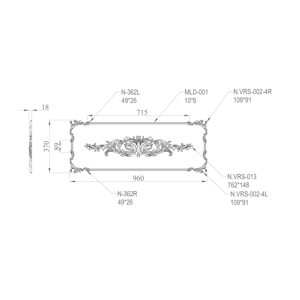 - For cornices and frames. Using the C.VRS-064 set to decorate ceiling cornices or mirror frames will create a harmonious ensemble in the space.