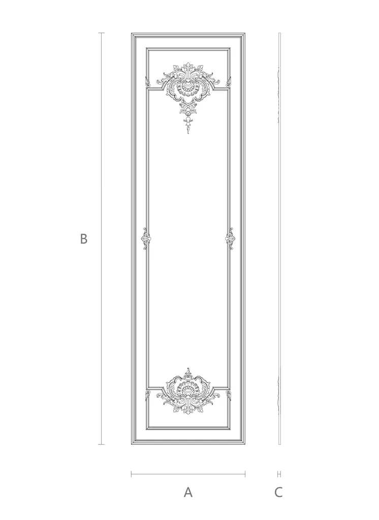 The wooden decor set C-001-2-1 consists of five wooden carved inserts, which have the same style and dimensions. The set includes:
