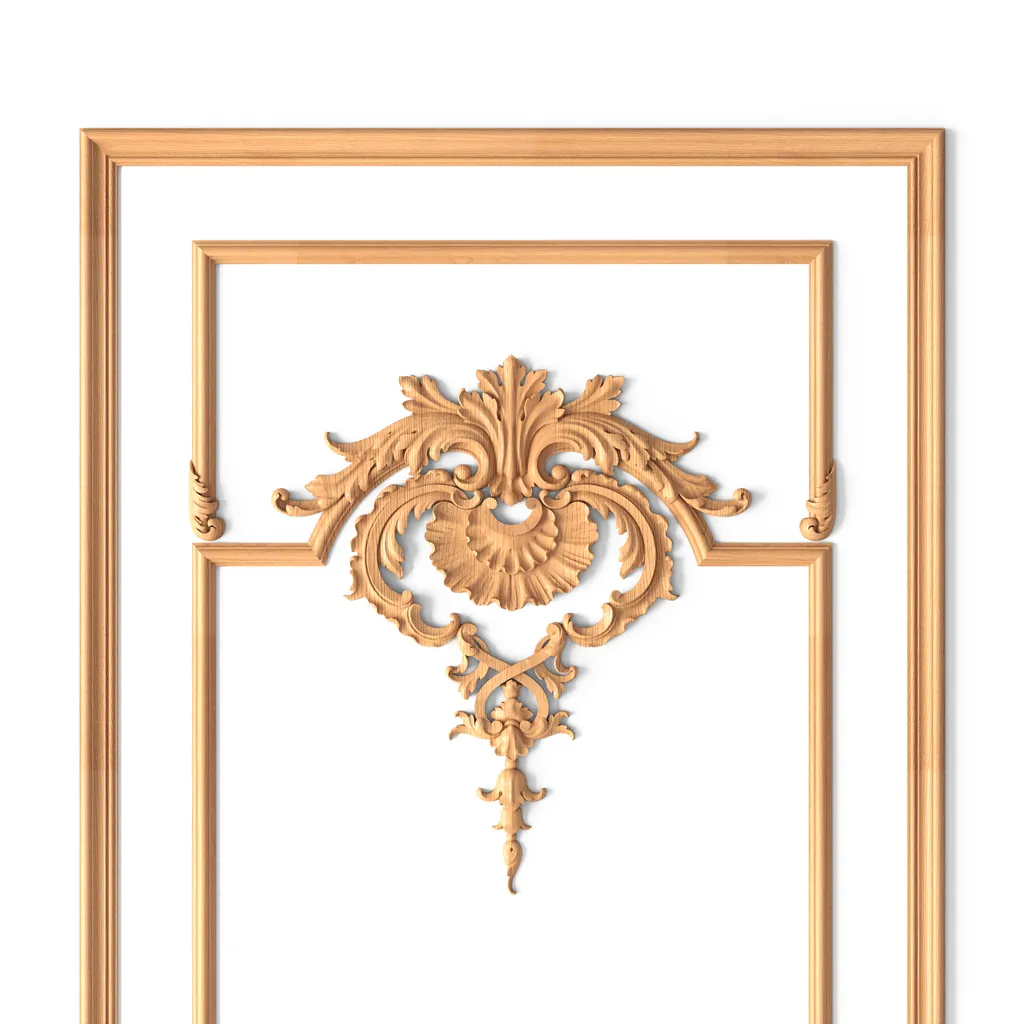 The wooden decor set C-001-2-1 is a set of decorative elements that can be used for Furniture decoration or other surfaces in your home. The set is made from solid oak or beech - two of the strongest and most durable wood species. The set is adorned with a carved ornament, which is a complex and elegant pattern of leaves, flowers, scrolls, and geometric shapes. The ornament is in a classic style, which suits any interior. The wooden decor set C-001-2-1 will add luxury, elegance, and individuality to your furniture.