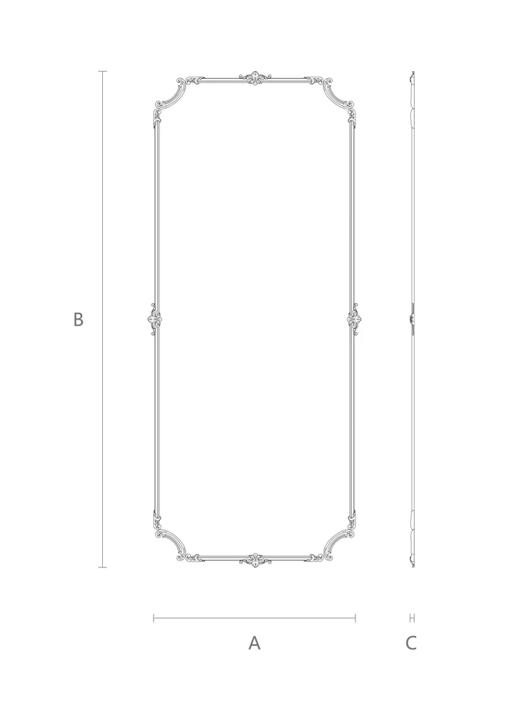 ● Carved appliqué N-437R. This is the right part of a rectangular appliqué with the same dimensions and ornament as N-437L. It can be used in pairs with it or independently, depending on your preferences and design intent.