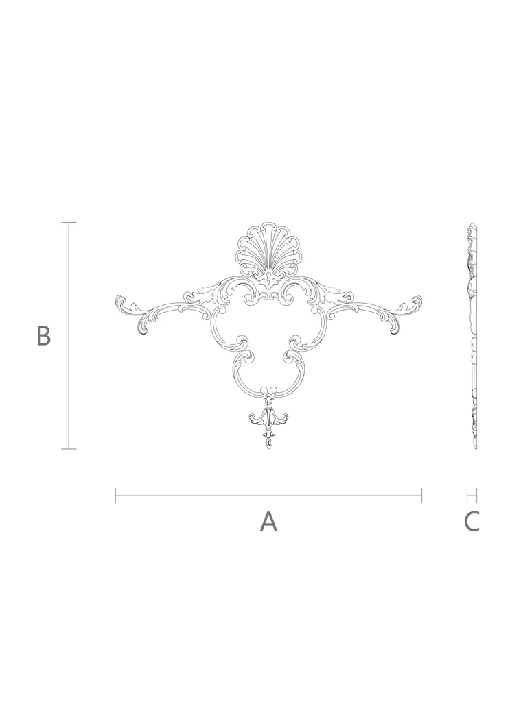 ● Carved appliqué N-433R. This is the right part of a rectangular appliqué with the same dimensions and ornament as N-433L. It can be used in pairs with it or individually, depending on your preferences and design intent.