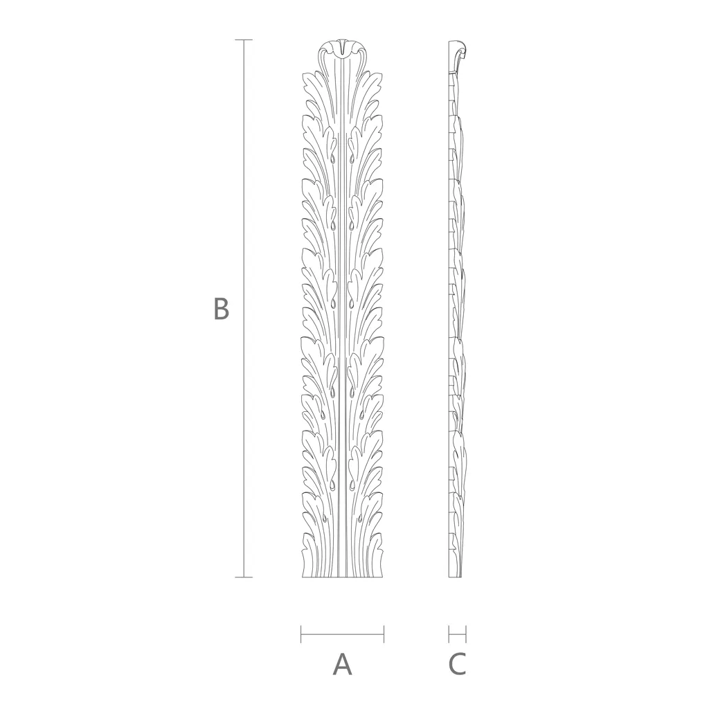 Carved insert N-091.1 from wood is a universal decorative element that can be used for various purposes. You can attach it to furniture to decorate it and give it individuality. For example, you can glue the carved insert N-091.1 from wood to the cabinet facade to make it more refined and noble. Or you can attach the carved insert N-091.1 from wood to the top of a chest to create a carved cornice effect. Or you can attach the carved insert N-091.1 from wood to the side of a nightstand to add elegance and charm. Or you can attach the carved insert N-091.1 from wood to a table leg to emphasize its style and beauty. Or you can attach the carved insert N-091.1 from wood to the headboard of a bed to make it more cozy and luxurious.