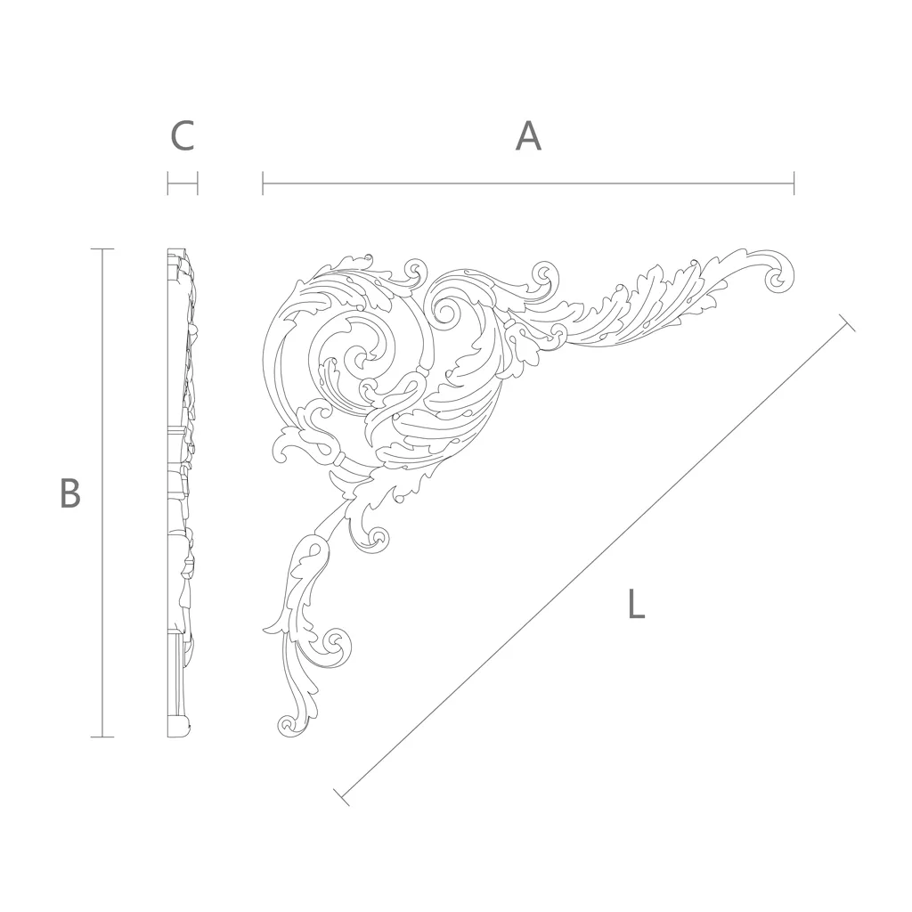 Are you looking for a way to give your interior a special charm and elegance? Do you want to update your furniture without spending much time and money? Do you love traditional and classic design motifs? Then you will like the carved insert N-184L, which is a corner decorative element. This item made of natural wood, crafted by skilled artisans, can become a wonderful decoration for your furniture, walls, doors or ceiling. The carved insert N-184L has a complex and elegant ornament, consisting of floral and plant elements. It creates a feeling of coziness, warmth and harmony in your home. The carved insert N-184L is not just wooden decor, but a true work of art that will highlight your taste and style.