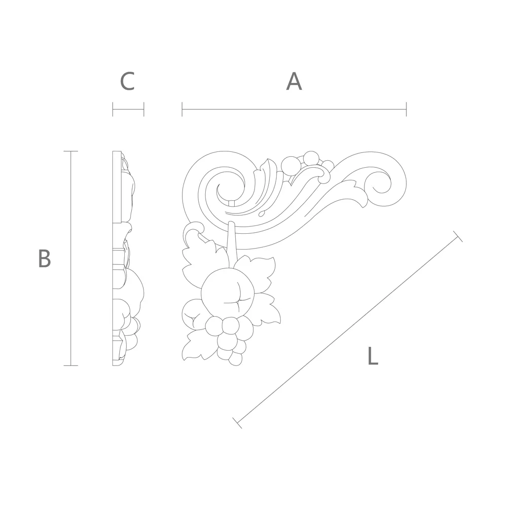 Do you want to make your interior more unusual, creative, and expressive? Are you looking for a way to decorate your furniture, doors, walls, or ceiling? Do you love wooden items with carved patterns and ornaments? Then you will like the decorative carved insert N-212R from wood from the Stavros decor store. This corner a surface-mounted elementcan serve various purposes: decorative wall, door, furniture, ceiling inserts, and other surfaces. This decorative element is made of oak or beech — reliable and beautiful wood species that retain their properties and appearance well. This carved item comes in three sizes, which you can choose depending on your needs and preferences. This decorative insert is designed in a modern style with original carved patterns that create a sense of dynamism, rhythm, and energy. The wooden carved insert N-212R will suit any interior, whether minimalist, eclectic, or avant-garde. It will give your home individuality and character.