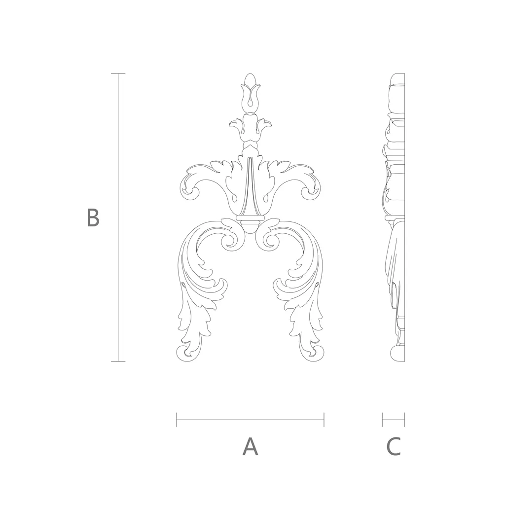 Wooden decorative carved inlay N-219 is central decorative elementthat can be used for decorative interior, furniture, door, ceiling, and other surfaces decoration. It is an elegant and delicate carved item made of natural wood - oak or beech. Wood is an ecological and durable material that gives the inlay warmth, reliability, and nobility.