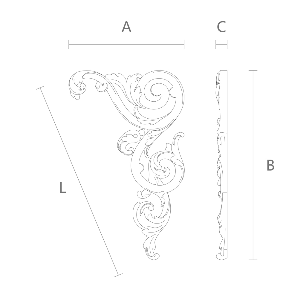 Carved Insert N-323R is a universal a decorative elementthat can be used for various purposes. You can attach Carved Insert N-323R to the front of a cabinet, chest, sideboard, or table to give your furniture a new look and style. You can also decorate doors, windows, mirrors, or paintings with Carved Insert N-323R to create an accent in the interior. Carved Insert N-323R is suitable for furniture made of any material: wood, metal, glass, or plastic. Carved Insert N-323R easily attaches to any surface using glue or nails included in the set.