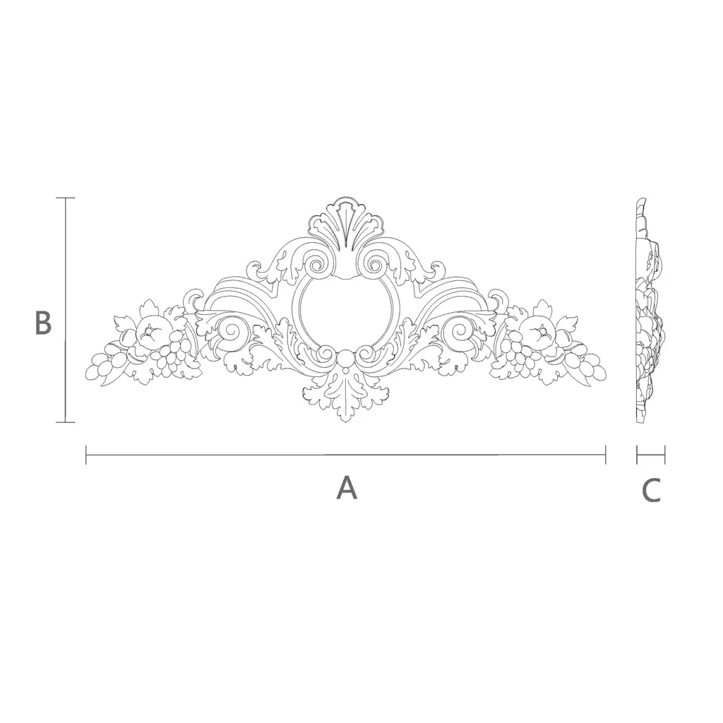 The carved wood inlay N-404 is not just a decorative element, but a true work of art that requires skill, patience, and love for one’s craft. This inlay is made from high-quality, durable wood — oak or beech — distinguished by their texture, color, and aroma. Then the wood undergoes carving — a complex and delicate process that requires the craftsman not only to master tools but also to possess artistic taste, imagination, and attention to detail. Wood carving is a form of artistic wood processing, in which various patterns, ornaments, figures, and images are carved out. Wood carving can be convex, concave, flat, three-dimensional, combined, etc. Wood carving can be hand or machine-made, but in any case, it requires care, precision, and adherence to proportions. The carved wood inlay N-404 is executed in the Baroque style — one of the most ornate and majestic styles in art history, which emerged in Italy in the 17th century and spread throughout Europe. Baroque is characterized by monumentality, drama, contrast, abundance of details, curves, and scrolls, as well as play of light and shadow. Baroque is a style suitable for decorating churches, palaces, castles, theaters, as well as homes and apartments of those who appreciate beauty, luxury, and grandeur. The carved wood inlay N-404 features a complex and beautiful floral ornament composed of various types of flowers, leaves, scrolls, and wavy lines. ornament It appears three-dimensional and realistic, as if it lives its own life on the surface of the wood. The ornament creates a sense of movement, dynamism, rhythm, and harmony. It fills space with light, air, and fragrance. It attracts the gaze and evokes admiration. It is not only decoration, but also a symbol of life, love, and beauty.