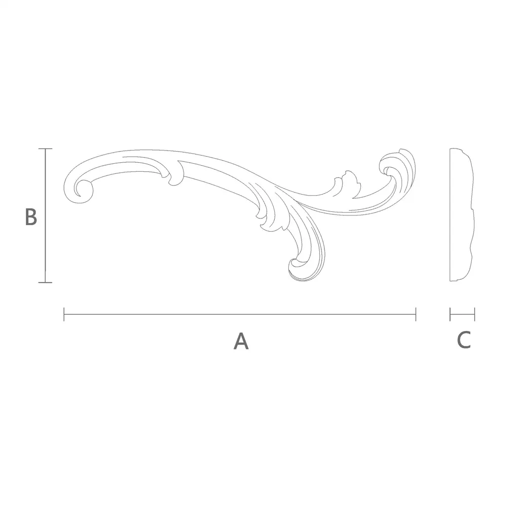 Decorative wooden overlay N-433R made of woodCarved - this is a surface-mounted element that will allow you to decorate and protect walls, furniture, doors, windows, and other surfaces in your wooden house. This item is made from oak or beech - high-quality and durable wood species, distinguished by their beautiful texture and color. The mounting is crafted as a carved ornament, which features an intricate and elegant pattern of leaves, flowers, and scrolls. Wood carving is a true art that requires skill, patience, and attention to detail. Each carved wooden mounting N-433R is a unique and one-of-a-kind piece that will give your home a special charm and atmosphere.