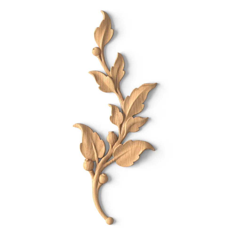 Wooden Carved Applique N-472L: a branch with leaves for your home