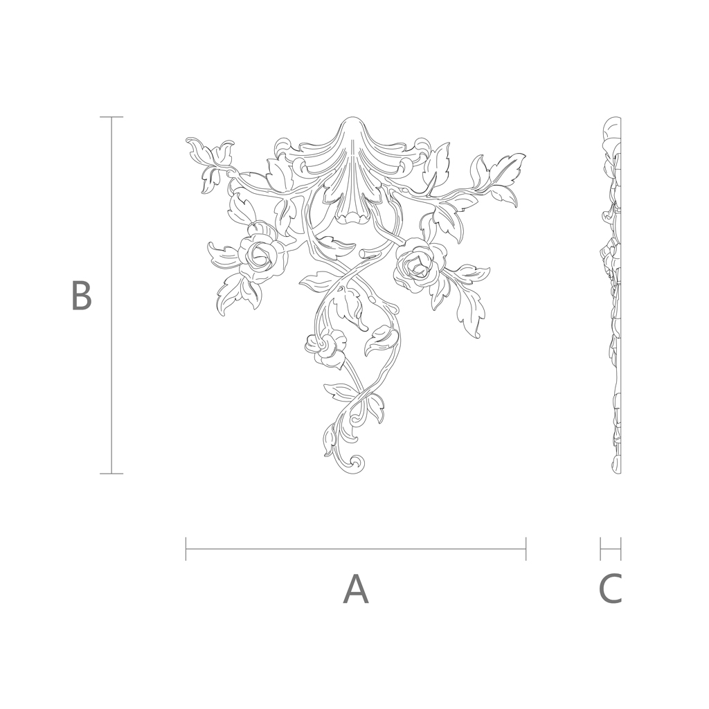 The floral ornament of the inlay N.VRS-002-3 is crafted with stunning detail. The carving on the wood highlights its natural beauty, while elegant roses and smooth lines make it a true interior accent. This element will harmoniously fit both classic interiors with retro touches and modern spaces, adding individuality and expressiveness.