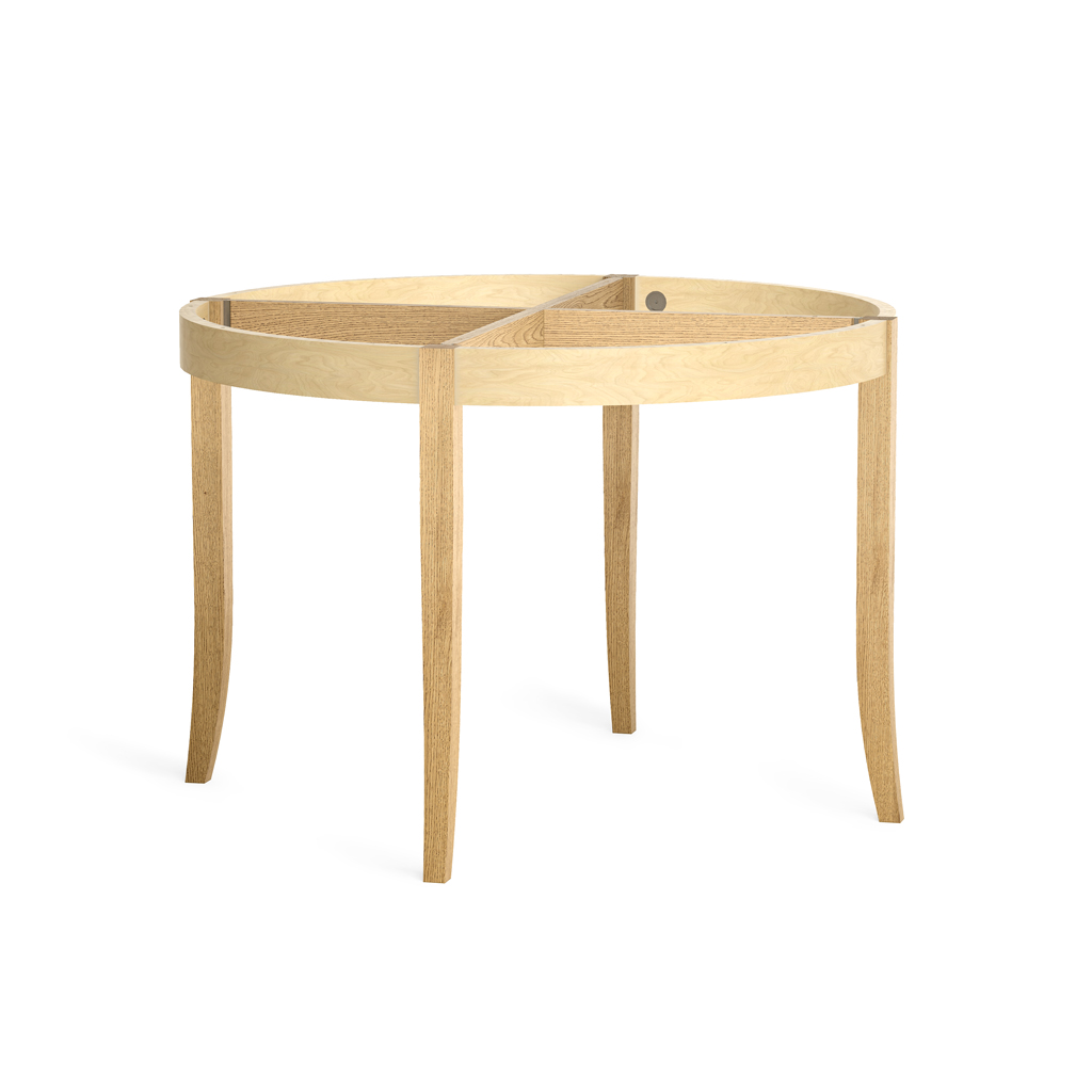 • The under-table structure consists of four wooden legs, aprons, an internal reinforcing crosspiece, and a complete set of hardware.