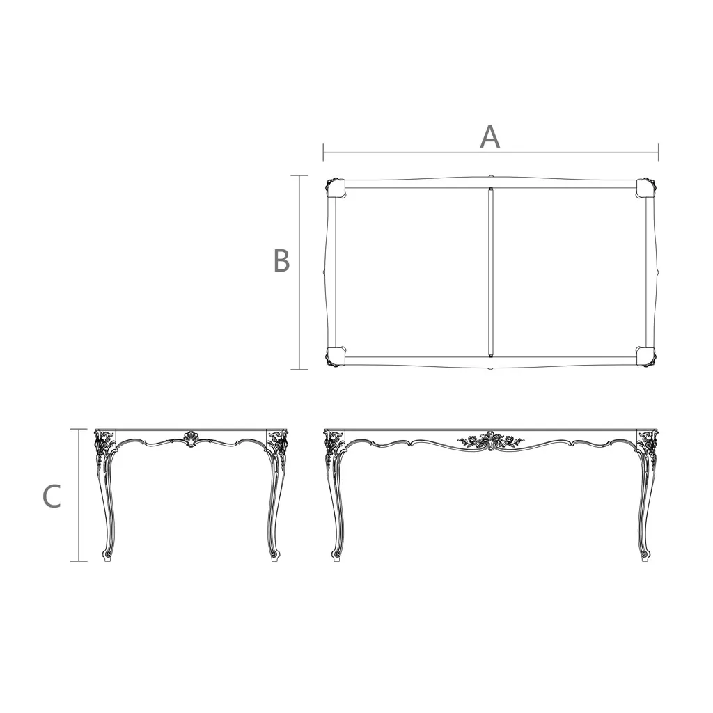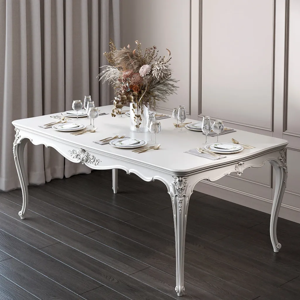 Carved dining table frame for six people in French Baroque style. The high craftsmanship with which the carved table STL-020 is made, its stylistic authenticity to the Louis XV era, can make it a decoration for any interior, both classic and modern eclectic style.