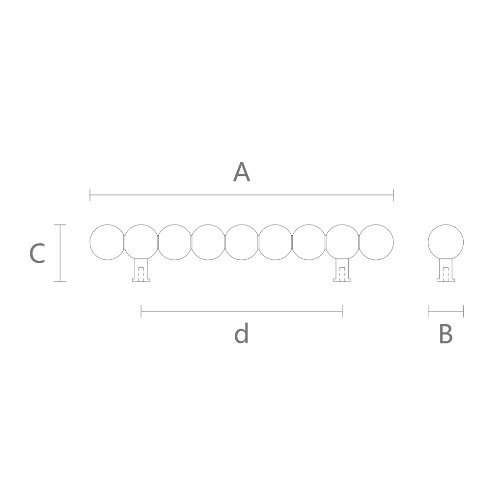 The total length of the handle is 240 millimeters, making it a universal solution for medium and large furniture fronts. On this length, a row of wooden spheres creates a rhythmic composition. The 160-millimeter center-to-center distance between mounting points corresponds to standard sizes used in the furniture industry, simplifying the replacement of existing hardware without the need to drill new holes. The 45-millimeter projection height provides sufficient space for a comfortable hand grip.