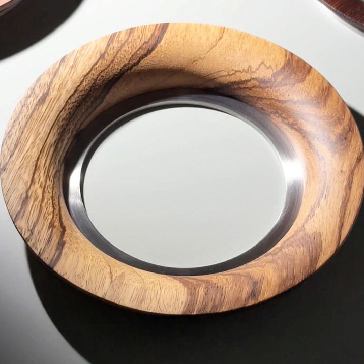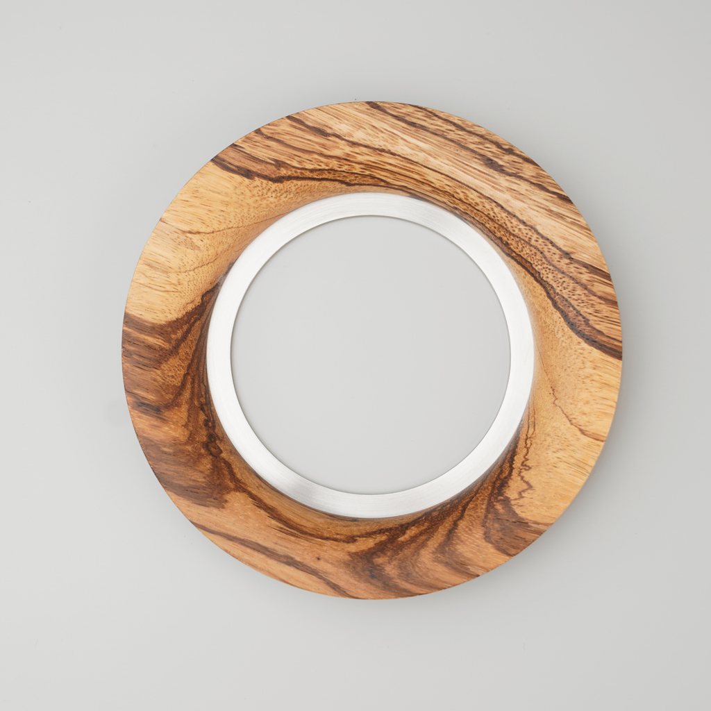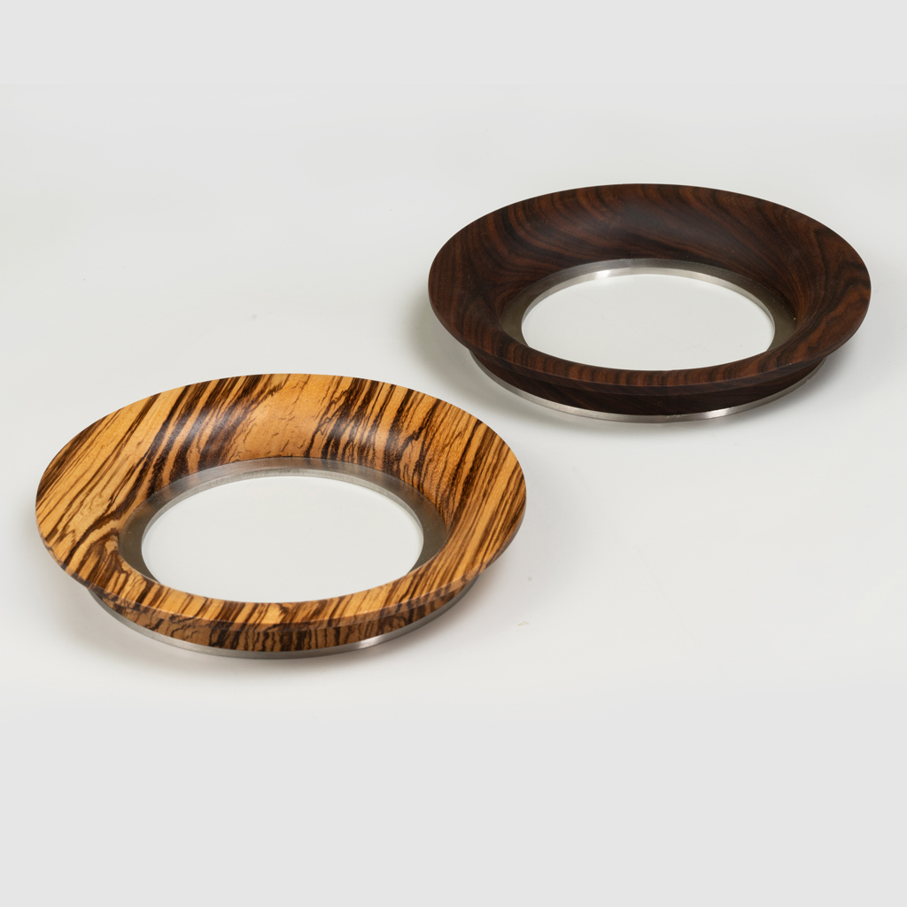 The wooden profiled insert of this handle is made from premium wood species — American walnut, zebrawood, wenge, and padauk.