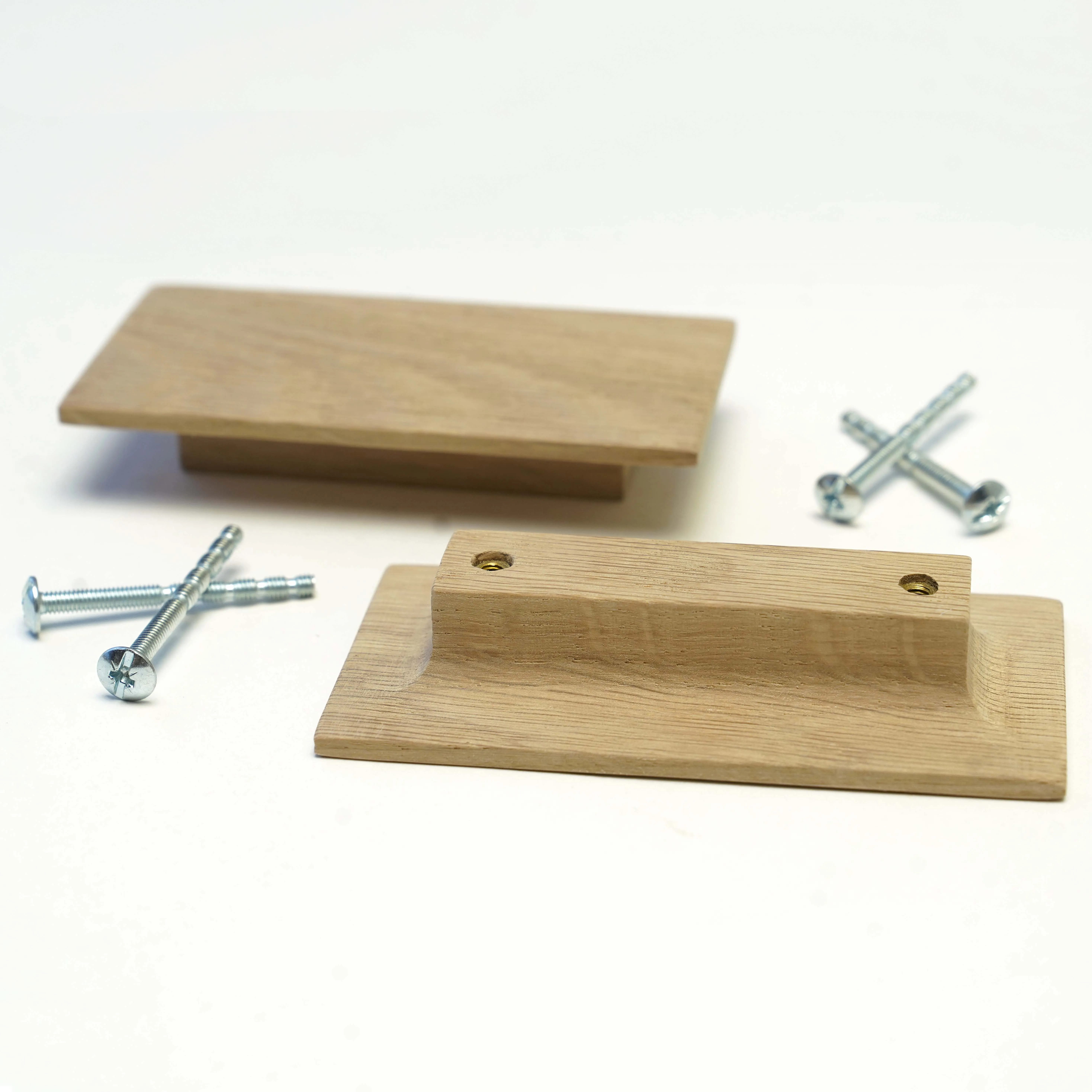 This surface-mounted handle is supplied unfinished.