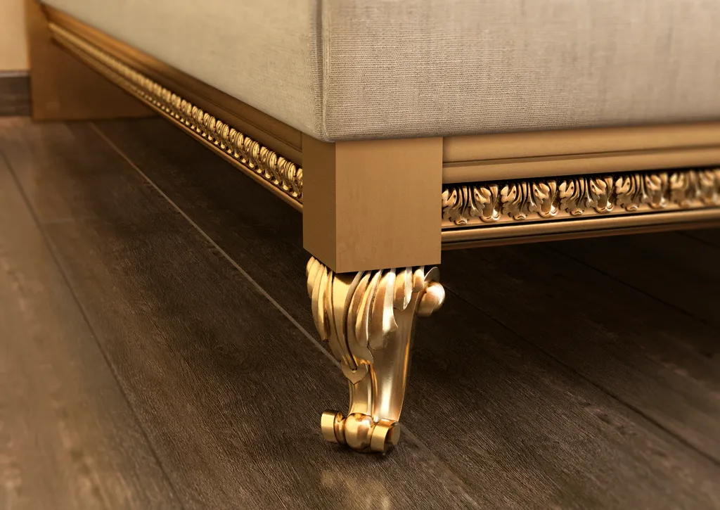 These carved pieces with acanthus leaf motifs look elegant and noble, harmoniously complementing natural leather, eco-leather, and luxurious interior textiles.