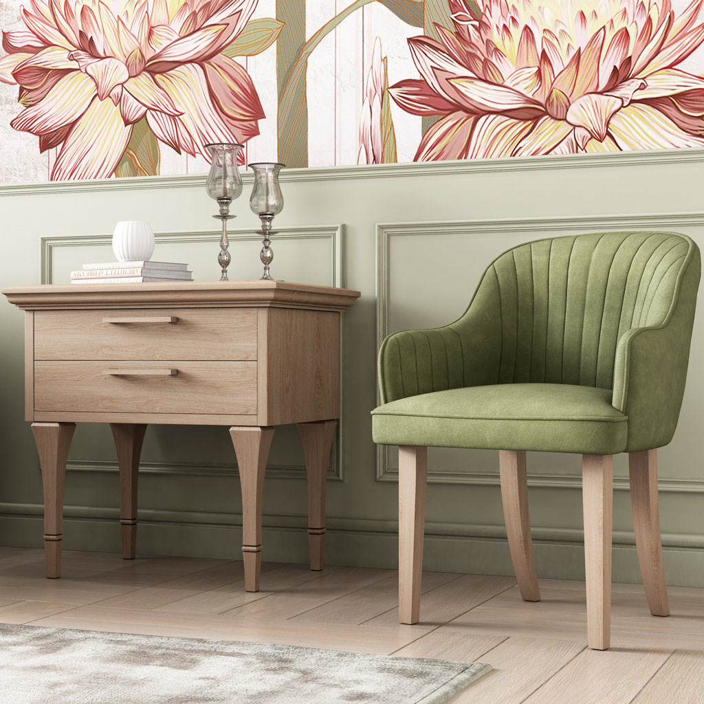 Oak — dense, porous wood with clearly visible natural grain. Due to its strength and decorative properties, it is often used in items with semi-transparent coating, highlighting the wood pattern.