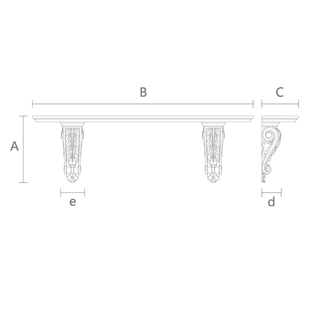 The length and proportions of the shelf make it a universal solution for placing both decorative accessories and functional items. Thanks to the high quality of materials and refined carving, this shelf will not only be an interior element but also a symbol of your refined taste and attention to detail.