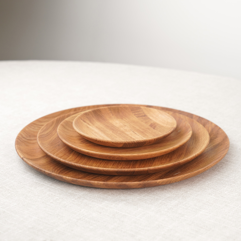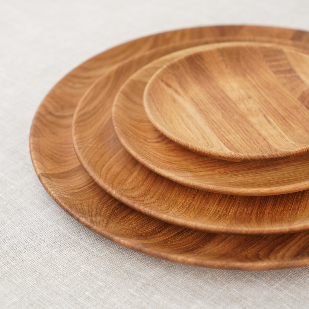 The oak wood from which our tableware is made is an eco-friendly material; its vivid, expressive texture has a unique pattern on each item.