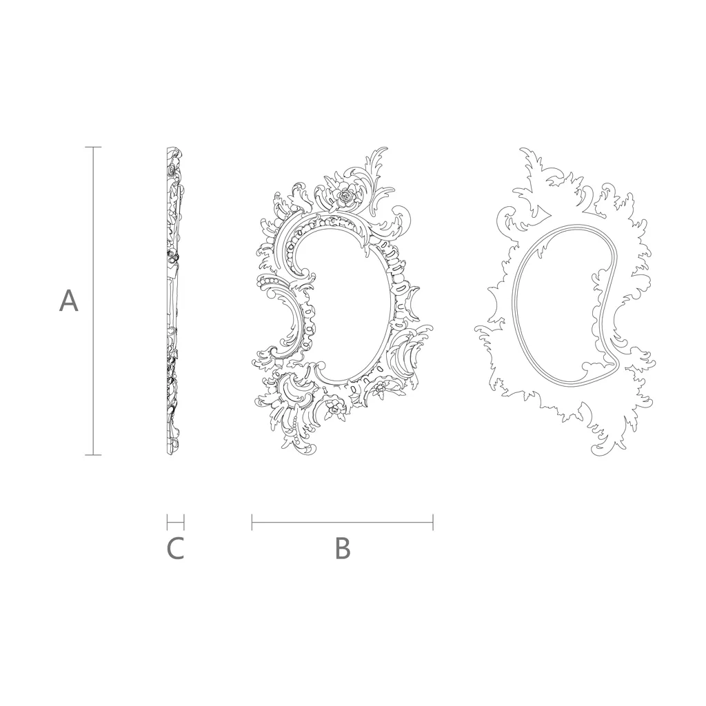 Carved frame RM-016 is not just a frame — it is a work of art created to embody grandeur and sophistication. Each element of this frame is carefully hand-carved, reflecting a rich tradition of carving, making every piece unique. Its original curved shape and intricate botanical patterns make it ideal to become the focal point in any room adorned with luxurious furniture, delicate chandeliers, and natural stone decor.