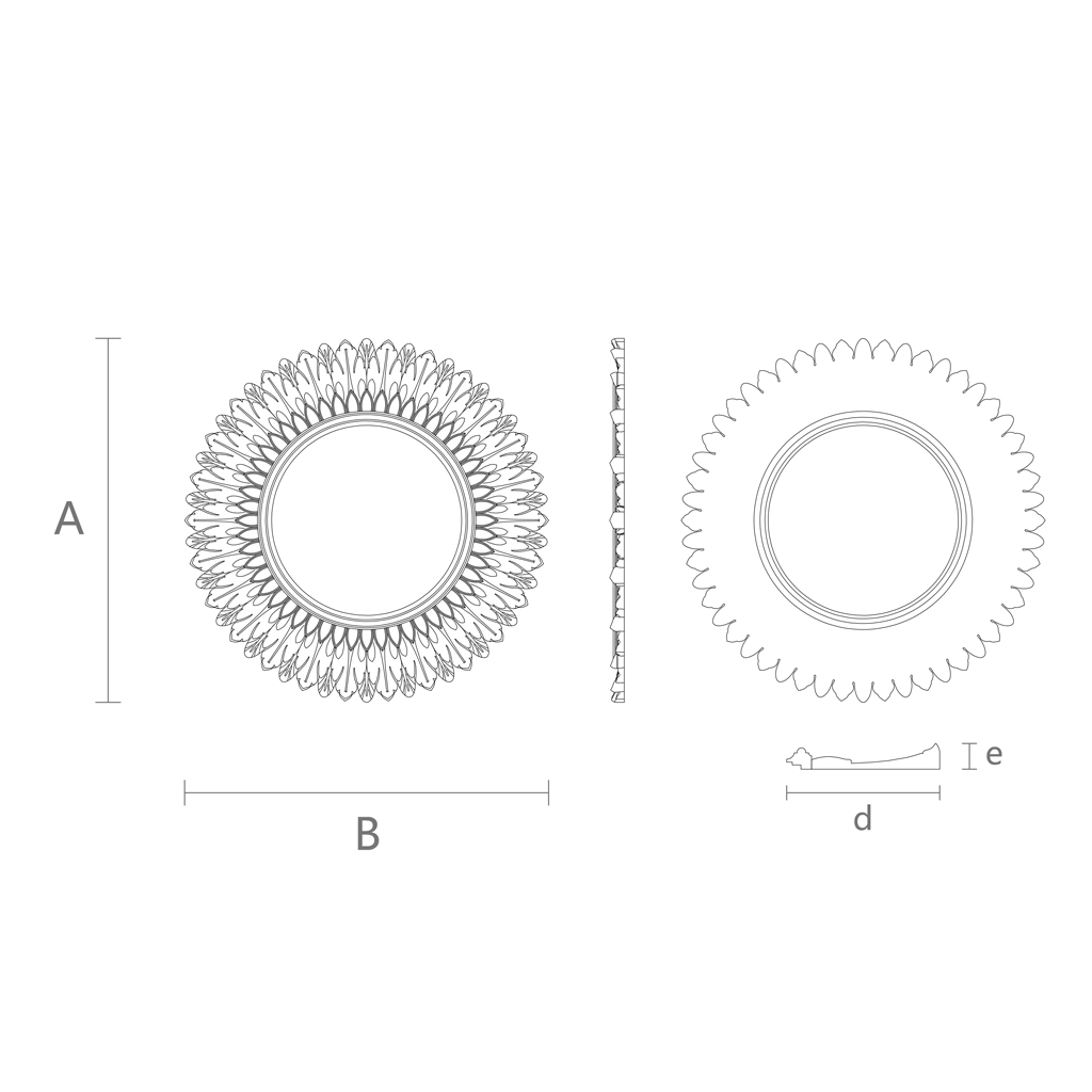 Carved Frame "Sun" RM-026, in neoclassical style. This multi-layered, intricately carved piece seamlessly integrates into prestigious living room, hall, and bedroom interiors. The wooden "Sun" frame harmonizes with luxurious upholstery fabrics, leather and eco-leather furniture, wrought iron, and natural stone decorative elements.