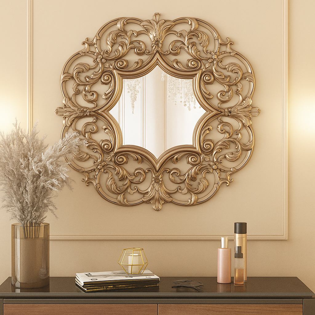 One of the popular ways of application carved wooden mirror frames is their installation in bathrooms, hallways or bedrooms. A mirror framed with a carved frame becomes a central decorative element, attracting attention and expanding the space. The carved details of the frame add elegance and aristocracy, turning an ordinary mirror into a work of art.