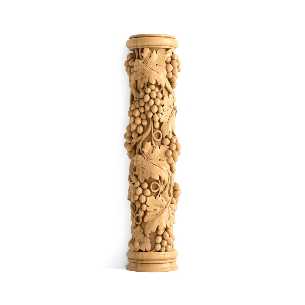 The half-column PLM-023, being an indispensable part of furniture and architectural decoration, finds application in various areas of the home or office. This carved beauty can be used as a decorative element for door frame casings, as part of a furniture ensemble as a decoration for bookshelves, or as facade elements on kitchen cabinets, imparting them elegance and sophistication.