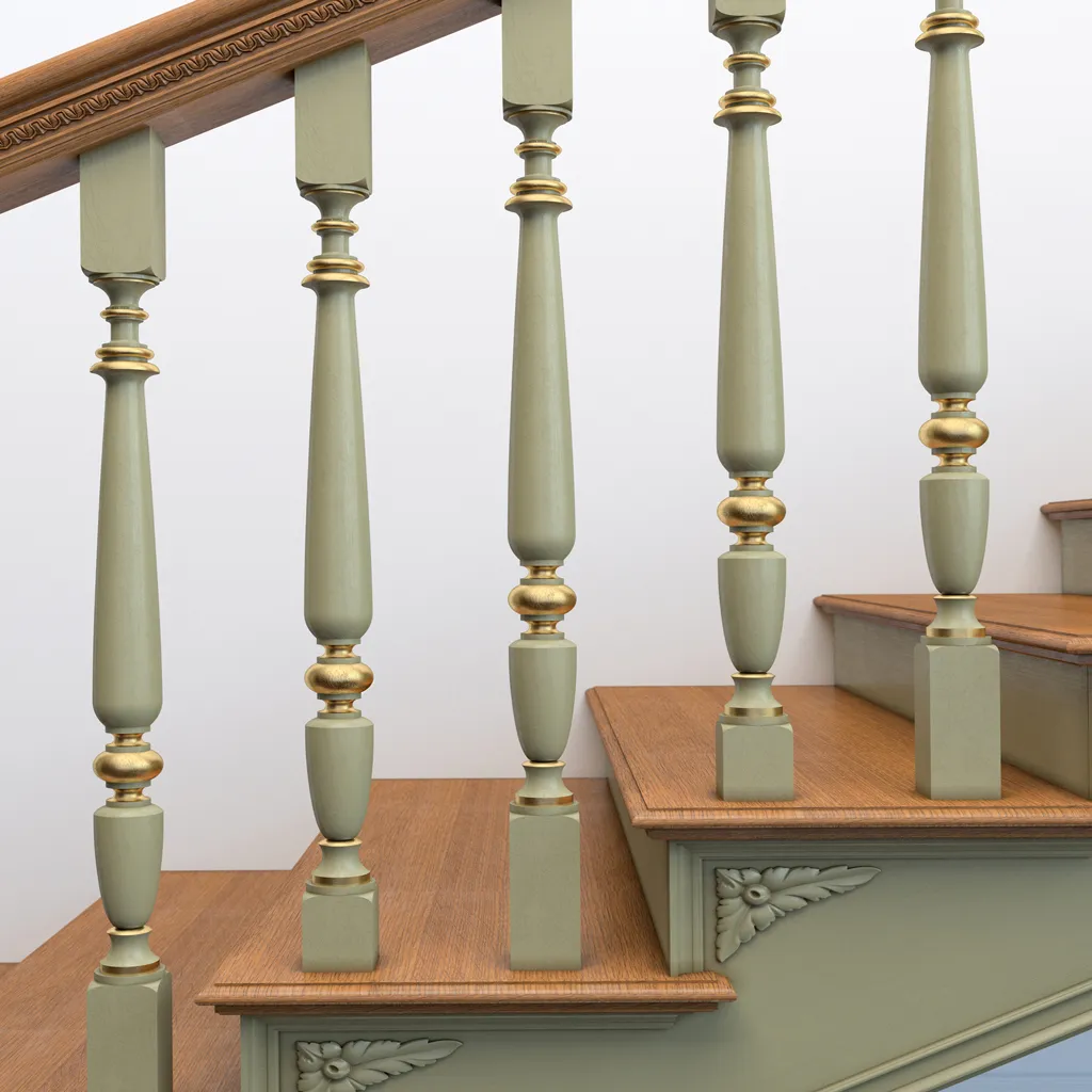 ● Aesthetics and elegance. Wood is a material that is easy to process and carve, allowing for the creation of diverse and original baluster shapes. Wooden balusters can be smooth or carved, straight or curved, thin or thick, monochromatic or combining different wood tones. Wooden balusters suit any staircase style, whether classic, modern, country, or loft.