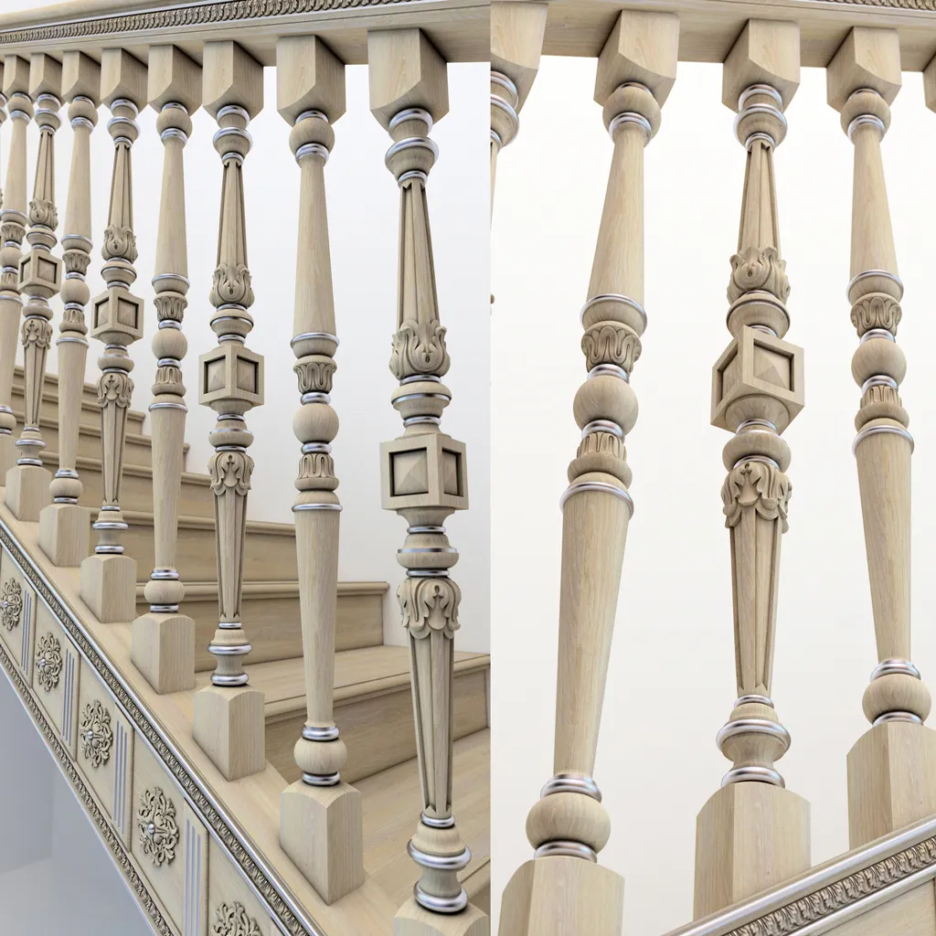 Baluster It is a vertical post that supports the staircase handrail. Balusters can be of different shapes, sizes, and materials, but the most beautiful and durable ones are wooden balusters. Wood is a natural and eco-friendly material that creates a warm and cozy atmosphere in the home. Moreover, wood is easy to work with and allows creating various patterns and carvings on balusters.