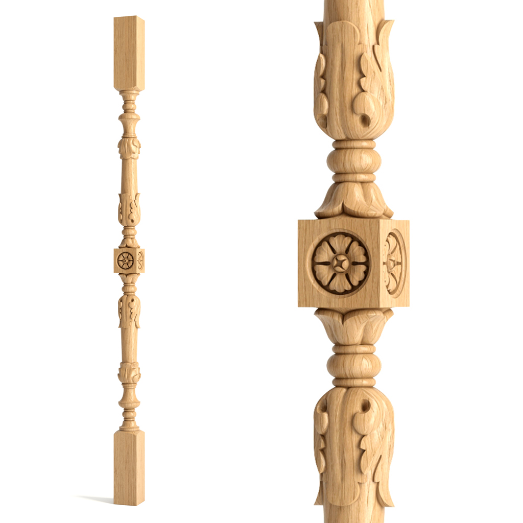 ● It not only performs its primary function — supporting the handrail — but also serves as a decorative element for the staircase. Its carved design attracts attention and evokes admiration.