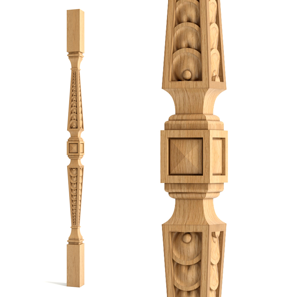 The wooden baluster L-042 is not just a detail, but a piece of carved art. It is made from a single piece of wood processed on a CNC machine. Each wooden baluster L-042 is an exclusive item with no analogues.